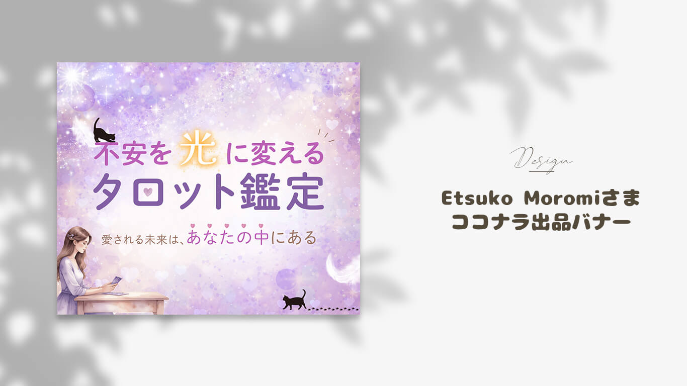 サイト内でしっかり目立つことを重視し、ラベンダーを基調に光の粒やハートを四隅に散りばめ、全体を華やかに演出しています。