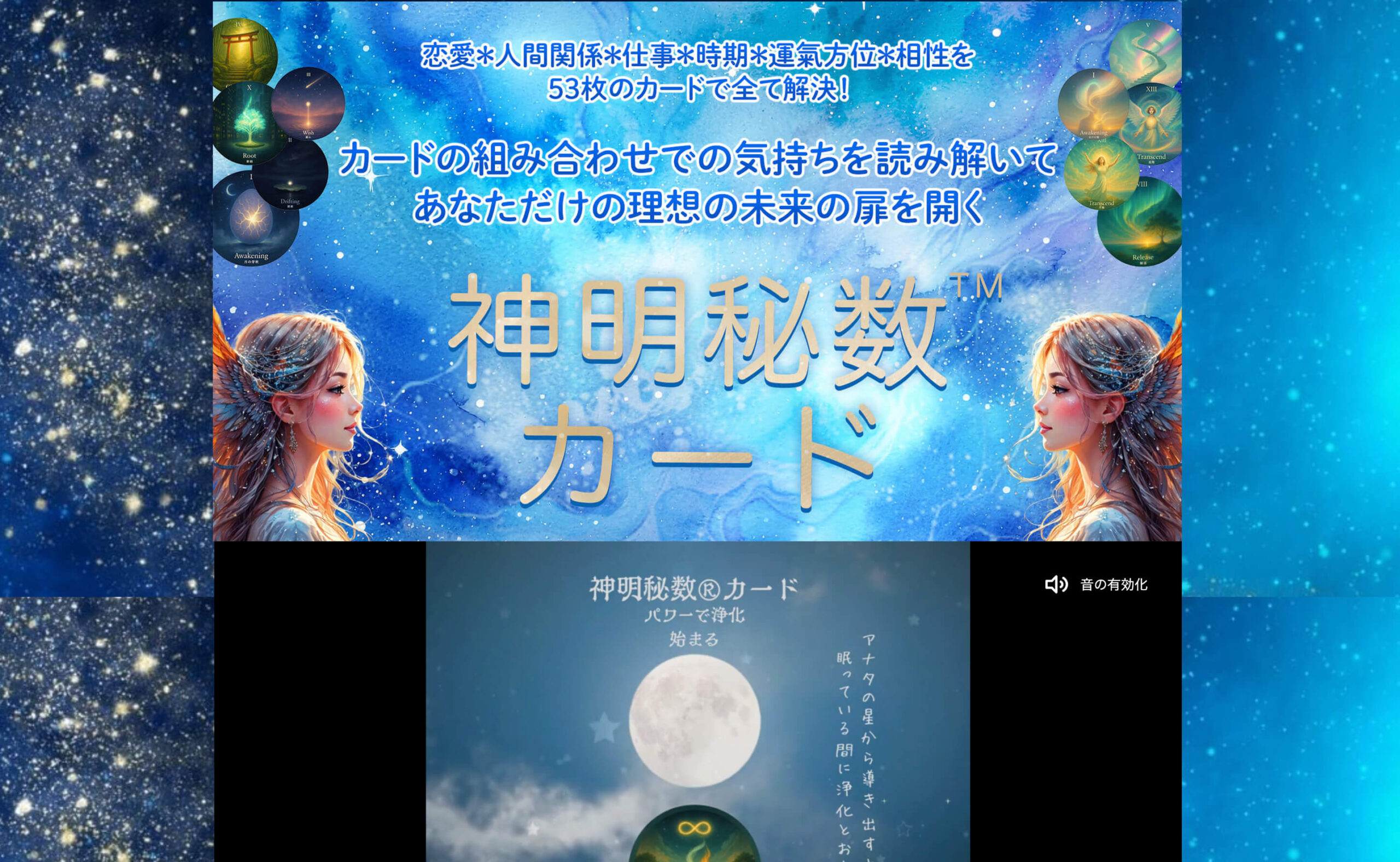 神明秘数カードのビジュアルは、「宇宙×神秘×光」をテーマに設計しました。